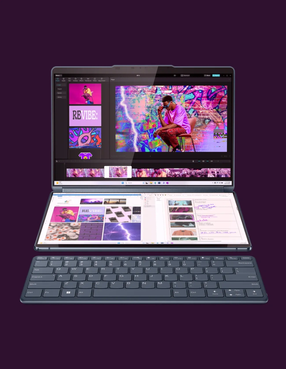 Il nuovo Lenovo YogaBook 9i è un dispositivo unico nel suo genere grazie al doppio schermo OLED, con diverse modalità di utilizzo, per creare, studiare, lavorare, giocare e molto altro ancora. Grazie al folio case, la tastiera Bluetooth®, il mouse wireless e la penna digitale, la tua creatività ha possibilità illimitate. Lasciati sorprendere dalla tecnologia Lenovo AI Engine+, che ottimizza prestazioni ed efficienza: che tu stia lavorando a effetti video, utilizzando software complessi o semplicemente leggendo, ogni attività sarà sempre rapida e fluida. Anche la batteria è migliorata, con durata più lunga e ricarica più veloce.